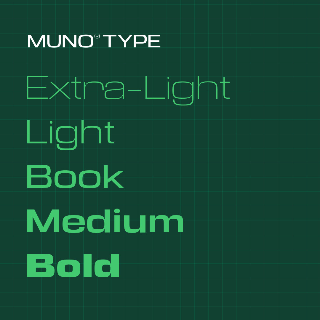 To reinforce recognition, we designed a bespoke type family, Muno® Type, available in three width variations, adding versatility and character across all touchpoints.