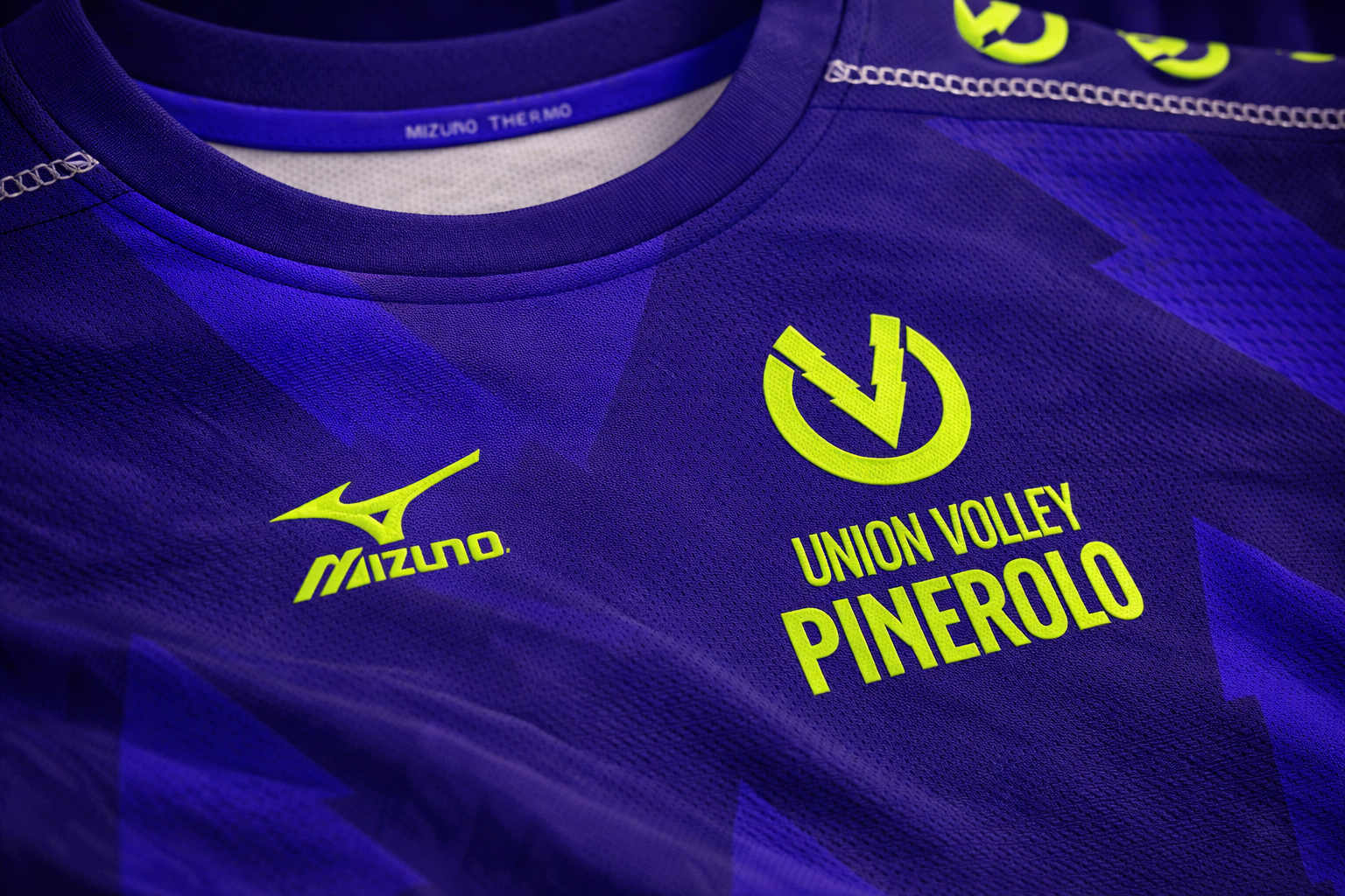 The U and the V come together in an ideal embrace of the city of Pinerolo. The two shapes take up the geometries of the cathedral door, a V that crosses the circular shape of a volleyball, creating a U. A pine tree, present in the heraldry and original element of the name of the city, intersects in the V, creating a negative space which, with the other shapes, inspires the suggestion of two lightning bolts converging towards the centre, to symbolize strength and speed.